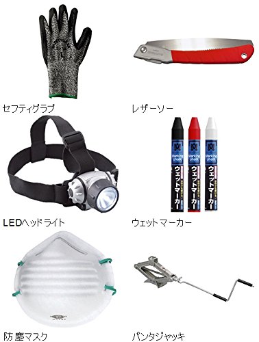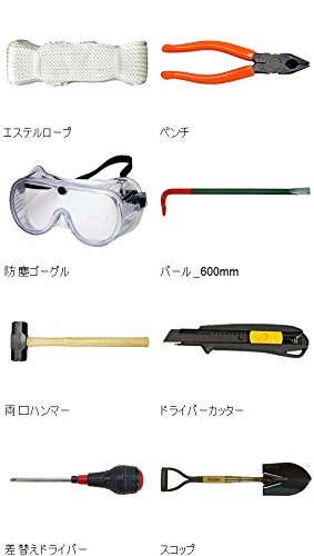 【商品説明】セット内容:セフティグラブx2双、レザーソー、LEDヘッドライトx2、ウェットマーカー、簡易防塵マスクx6、パンタジャッキ、エステルロール(9mmx20m)、ペンチ、防塵ゴーグルx2、平バール、両口ハンマー、ドライバーカッター、差し替えドライバー、ショベル