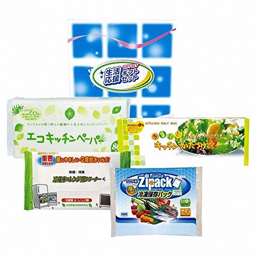 Size:ポリ袋(50枚)(約80x220x35mm)・キッチンペーパー(80枚)(約115x230x42mm)・冷蔵庫クリーナー(5枚)(約210x115x5mm)・フリーザーパック(3枚)(約205x140x3mm)x各1