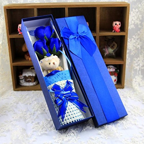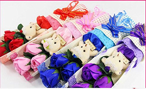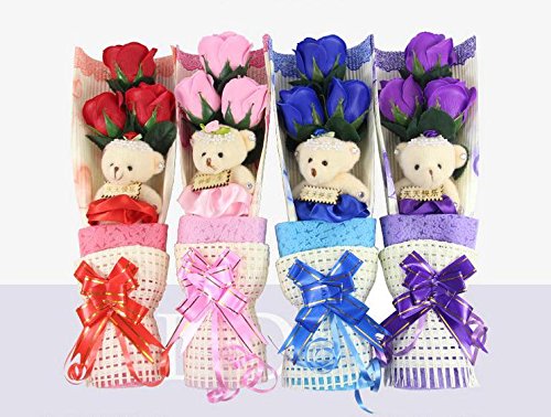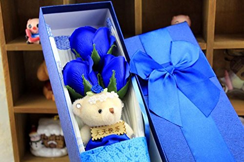 アイデアは、バレンタインデープレゼント3つの石鹸花+熊は、花束と彼女の誕生日の誕生日をプレゼントして (ブルー、)