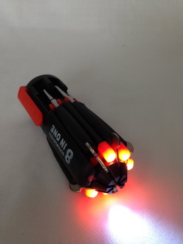 LEDライト付きのマルチドライバーです。 ライト付きなので暗がりの作業にも向きます。 電池は付属しません。