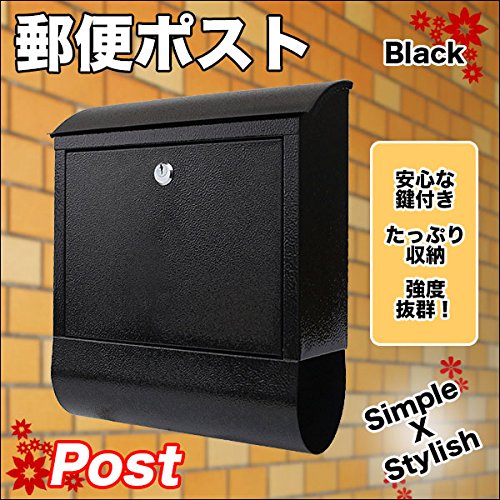 シンプル郵便ポスト 鍵付き/屋外用 郵便受け カラーポスト (ブラック)
