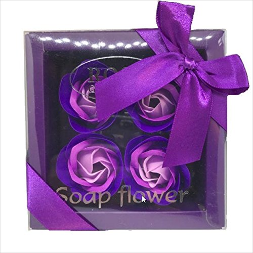 【freenation】大切な人へ 花 ( ソープフラワー ) と メッセージカード の セット (パープル 花びら 4個)