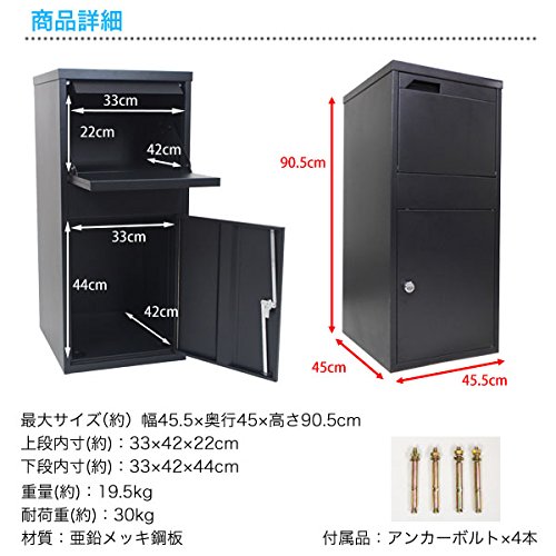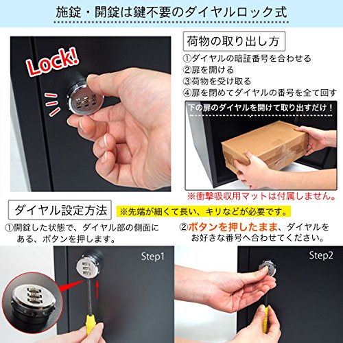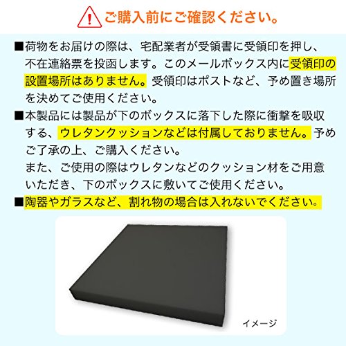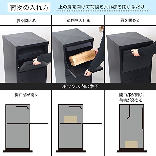 荷物の受け取りが心配でなかなかネット注文ができない方にオススメ! 不在時も荷物が受け取れる宅配ボックスです! 上扉を開けて荷物を入れて扉を閉めると、自然と落下する仕組み。 下扉は暗証番号で開けるダイヤル付きの安心設計です♪ 帰宅時間を気にしたり、再配達の連絡をする必要も無くなります。 入居者も宅配業者も嬉しいアイテムです。 ※本製品に荷物の落下の衝撃を吸収するウレタンクッション等は付いておりません。 予めご了承の上ご購入ください。