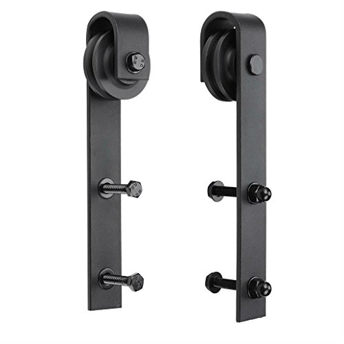 2pcスチールスライドバーン木製ドアローラーハードウェア交換用ブラケットセットIシェイプ