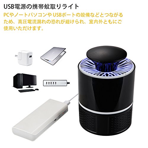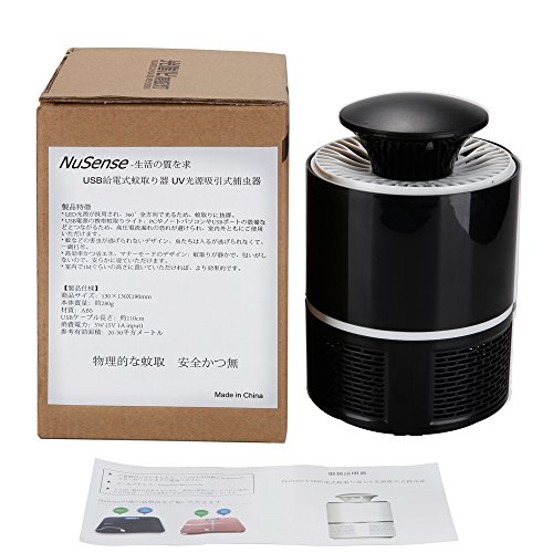 蚊取り器 UV光源吸引式捕虫器 NuSense USB給電式 驱蚊器 省エネー 携帯便利 静音 化学薬品不使用 寝室 リビング 居間 台所 アウトドア用 (ブラック)