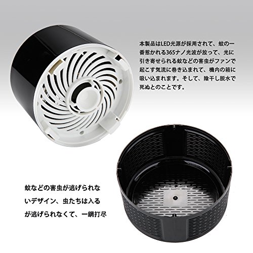 • 【紫外線で集めて吸い取る】虫は紫外線に集まる習性を利用して、蚊取り器に集まってくる蛾、蚊、ハエ、その他害虫を吸引ファンで本体のカゴに吸い込み、蚊はカゴから逃げ出せずに風化死滅します。
