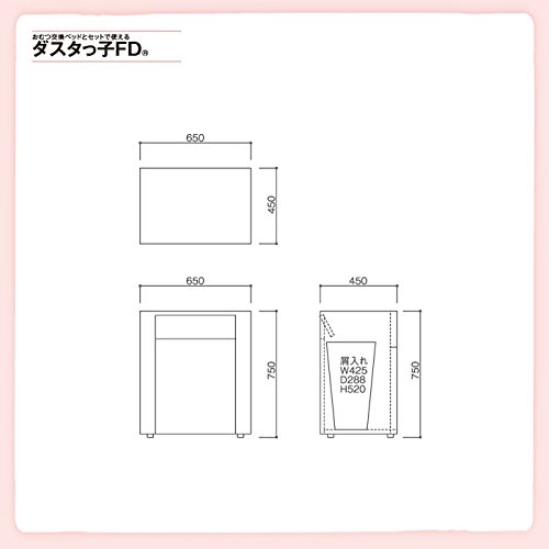 - ・おむつ交換ベッドとセットで使える。