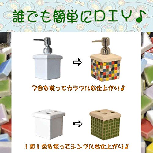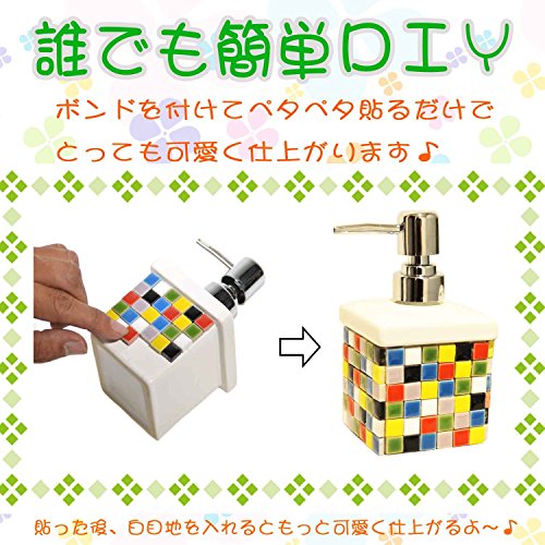【様々な用途に対応できるように7色入り】 ・品質にこだわり抜いた高級感のある質感 ・様々な用途に対応できるように7色のカラーでお届けします。 【レッツDIY! 自作のアートや雑貨、インテリアにも!】 ・タイルクラフトやDIYでご使用いただけます。 ・ハンドメイド作品制作にはもちろん日々の生活空間にあるものに貼り付けるだけでとっても印象が変わります。 ・添付画像はソープディスペンサーや歯ブラシスタンドに貼り付けてみました。 ・所要時間は約15分の作業で簡単に出来ました。 【たっぷり入った300g。ボンドで貼り付るだけの軽作業で簡単にご使用いただけます。】 ・10mm角7色。 ・300gをカラーミックスしてお届けします。 1個の重さが約1.1gですので300gでおよそ270~280個入っています。 ・ホームセンターなどで売られている速乾の接着剤を使って貼るだけで簡単にご利用いただけます。 ボンドを使用されない場合は両面テープで貼り付けで使用できます。 ※ボンドは付属していませんのでご自身で用意してご使用くださいませ。