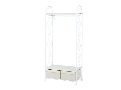 アイアンの曲線がエレガント、衣類や帽子・小物類も美しく収納できるハンガーラック。引き出し2杯付き プレゼントやギフトとしてもおすすめ。
