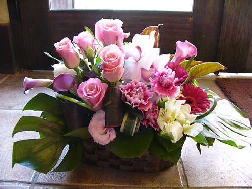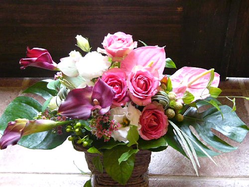 デザイナーにおまかせ フラワーアレンジメント Lサイズ (ピンク系) 【 即日発送 誕生日 プレゼント ギフトにも】