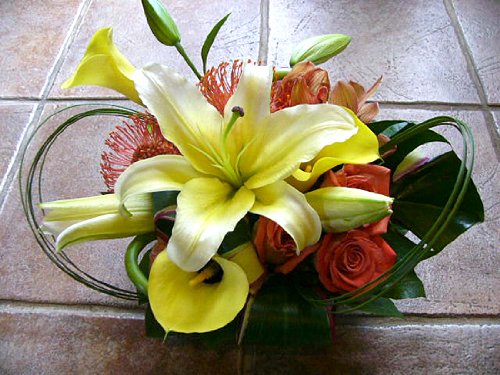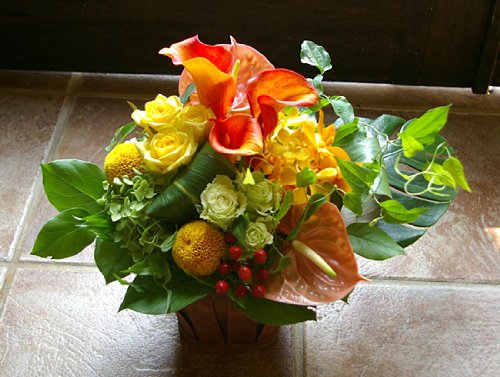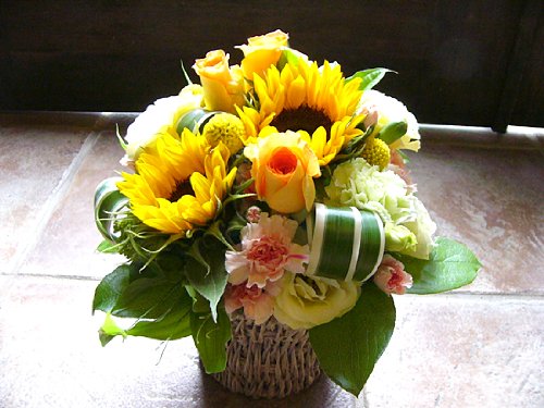 デザイナーにおまかせ フラワーアレンジメント Mサイズ (イエロー・オレンジ系)