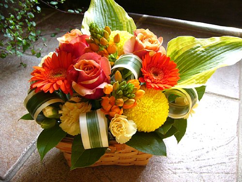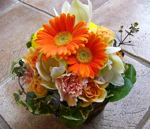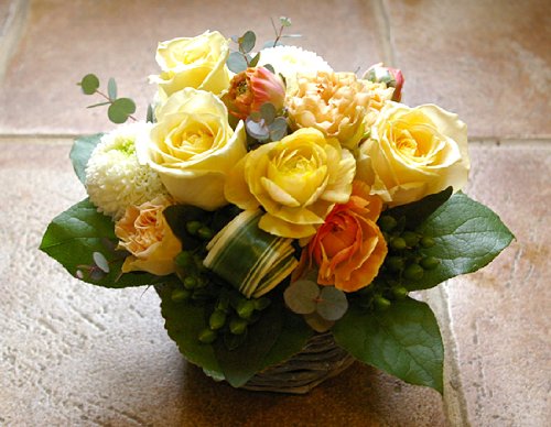 パラボッセオリジナル デザイナーにおまかせ フラワーアレンジメント Sサイズ (イエロー オレンジ系)