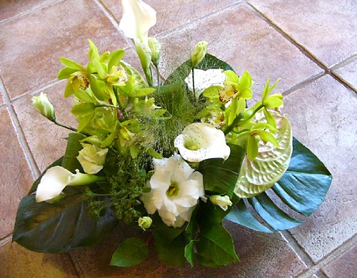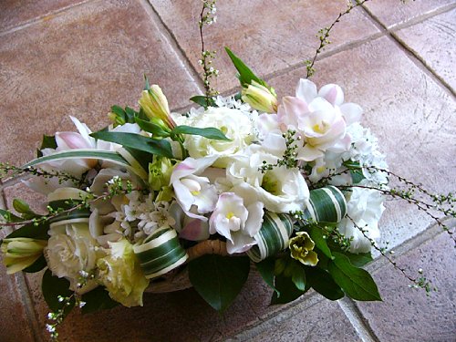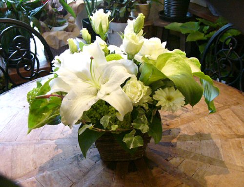 パラボッセオリジナル デザイナーにおまかせ フラワーアレンジメント Mサイズ (ホワイト グリーン系)