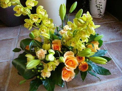 デザイナーにおまかせ フラワーアレンジメント KINGサイズ (イエロー オレンジ系)
