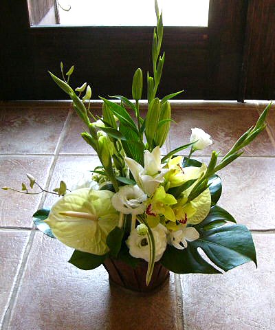 パラボッセオリジナル お悔やみ お供え デザイナーにおまかせ フラワーアレンジメント Mサイズ (縦長)