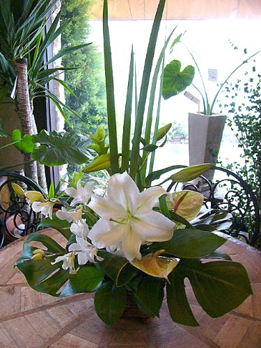 ご注文日の翌日以降お届け日指定可能。 ※ご注文日の14時以降は翌日扱いとなります。 ※ご指定がない場合には入金確認後、最短でお届け致します。 ■スタイリッシュなアレンジをご希望ならぜひ当店のおまかせアレンジメントをお勧めします! ■花の産地 信州にある当店は新鮮なお花だけを使用しています。その日に仕入れたお花がその日のうちに使い切られることもしばしば。 お花のローテーションが早いのです。 ⇒こだわるのは、新鮮な状態でお客様のお手元にお届けすること。 1日でも長く楽しんでいただきたいから 新鮮な花材だけを使用しています。 ■デザインにこだわり、お花を様々な角度からみつめ、そのお花がもつステキな表情を見逃しません。 ■Mサイズはテーブルサイズでありながらとても華やかです。ビジネスシーンでの葬儀や法事、またはご自宅用などにご利用ください。