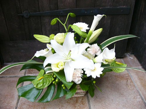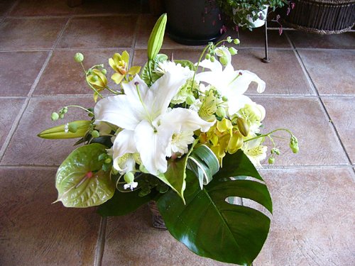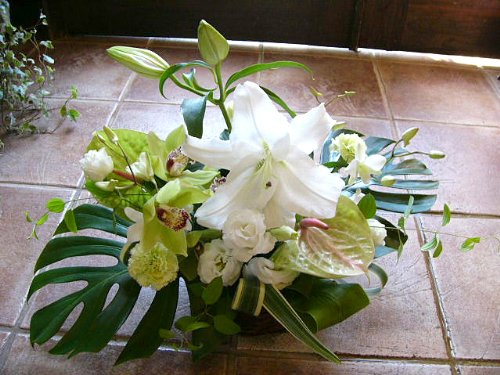 お悔やみ お供え デザイナーにおまかせ フラワーアレンジメント Mサイズ (横長)