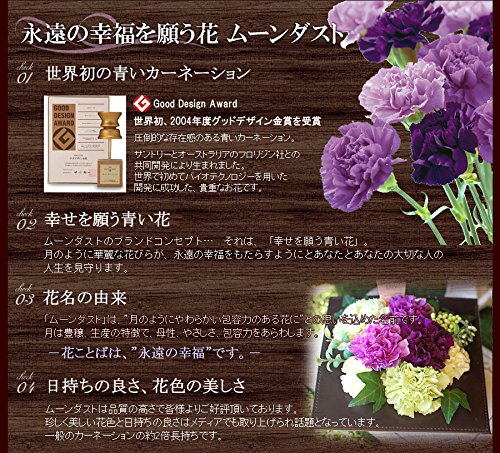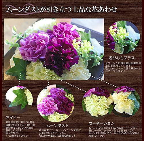 - 生花 ムーンダスト 生花 アレンジメント ムーンダスト3本使用 参考サイズ:横幅19cm x 19cm x 高さ19cm 母の日限定商品 母の日ギフトは定型文の母の日カードもお付けします。お花と一緒にお手入れのしおりをお付けします。お花に不慣れな方でもしっかりお楽しみいただけます。商品の色・形態は、多少写真と異なる場合がございます。