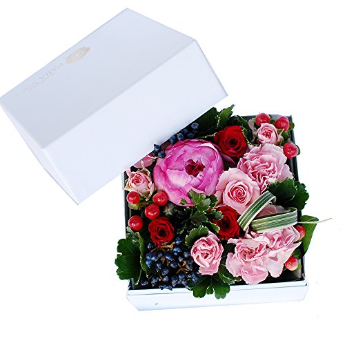 パラボッセオリジナル フラワーボックス クール便配送 アレンジ ピンク ボックスフラワーSサイズ(レッドピンク系・ホワイトbox)
