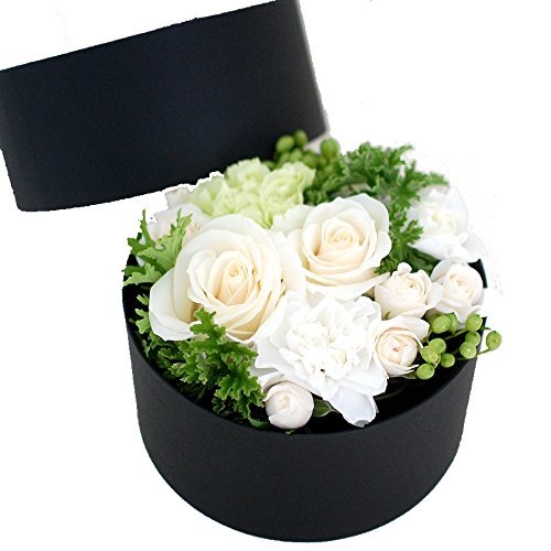 - ボックスフラワー フラワーアレンジメント ホワイト グリーン 参考サイズ(全体):約Φ15cm×H12cm