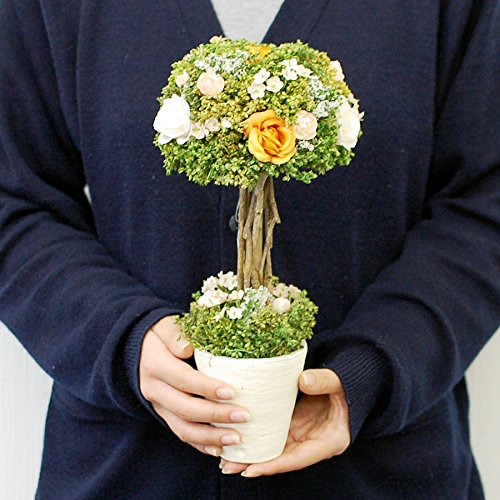 パラボッセオリジナル ドライフラワー キャンディトピアリー オレンジ Lサイズ クリアケース付 横幅14cm×14cm×高さ20cm