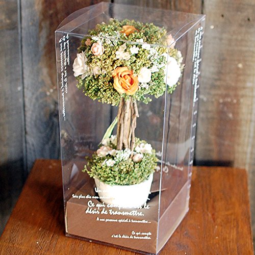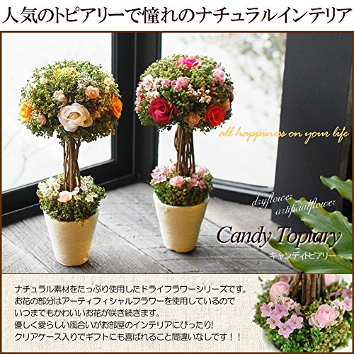 - ドライフラワー キャンディトピアリー ギフトにおすすめ、クリアケース入 商品サイズ:幅約14cm、高さ約29cm クリアケースサイズ:14cm×14cm×30cm