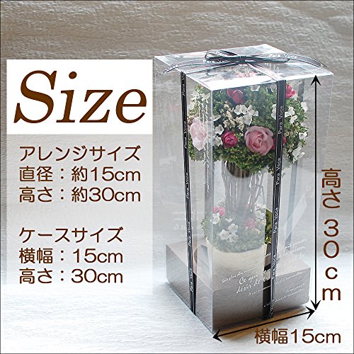 プラスチックケース付 ドライフラワー・アートフラワーで制作しているので、1年以上お楽しみいただけます。★生花のように色鮮やかで、柔らかい花の質感がそのままです。 なので、生花では花粉アレルギーや香りが苦手、という方にはピッタリなお花です♪ お水がいらないのでインテリア感覚でオシャレな空間をお楽しみください! 専用プラスチックケース入りだからホコリが付きません。 ひとつひとつ丁寧に手作業で心をこめて制作しています。どこにでも気軽に飾れます。 かわいらしいピンクのアレンジなので、ご自宅用にも最適です。