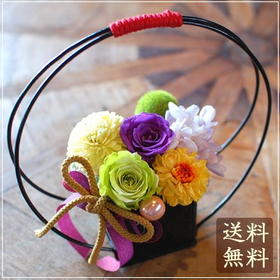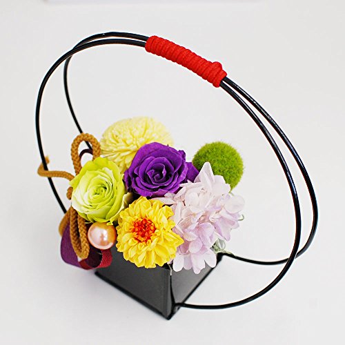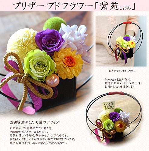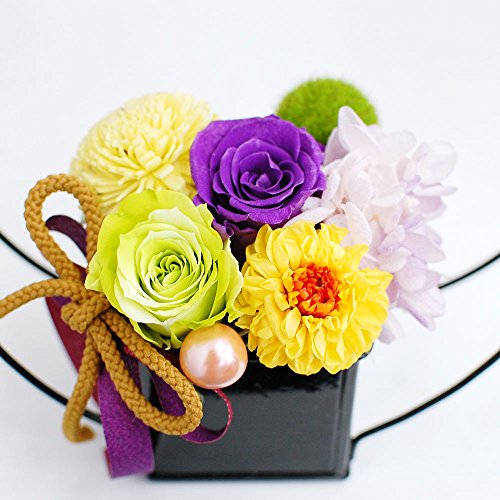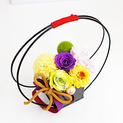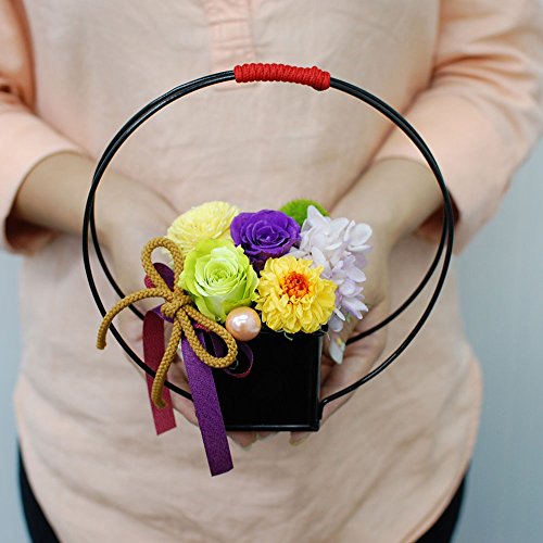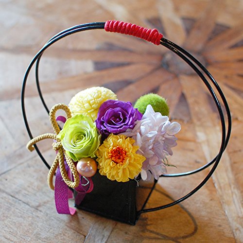 枯れずに長く楽しめるプリザーブドフラワーを和風にアレンジしました。 和室にも洋室にも飾って頂けるデザインです。 農林水産大臣賞受賞経歴をもつデザイナーがアレンジしたのでセンス抜群です。 ひとつひとつ丁寧に手作業で心をこめて制作しています。 敬老の日のギフトやお祝いなどにおすすめです。もちろんご自宅用にもお飾りください。