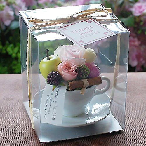 ★プリザーブドフラワーは生花やドライフラワーとは違った楽しみがあります! 生花のように色鮮やかで、柔らかい花の質感がそのままです。 なので、生花では花粉アレルギーや香りが苦手、という方にはピッタリなお花です♪ お水がいらないのでインテリア感覚でオシャレな空間をお楽しみください! 他に見ないデザイン、カップに入ったオシャレなプリザです! クリアケース付、ラッピング済、スイーツセットで3240円! クリアケースがあるので、気になるホコリの心配もいりません。