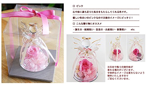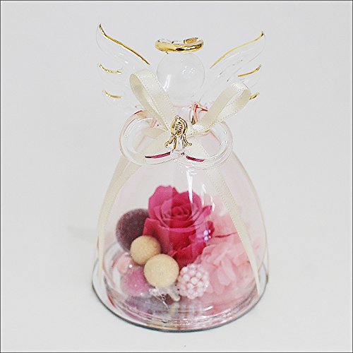 パラボッセオリジナル 天使型プリザ エンジェル ピンク クリアケース入 横幅11cmx11cmx高さ13cm preserved flowers in glass