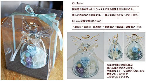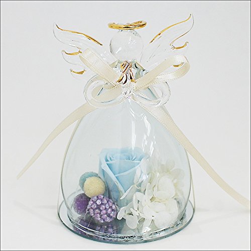 パラボッセオリジナル 天使型プリザ エンジェル ブルー クリアケース入 横幅11cmx11cmx高さ13cm preserved flowers in glass
