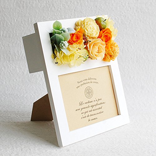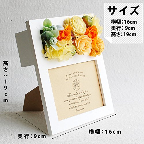 - サイズ:横幅約16x9cmx高さ19cm 商品の色・形態は、多少写真と異なる場合がございます。プリザーブドフラワー カンパーニュ 花色:オレンジ フレーム:ホワイト。フォトフレームプリザ 写真たて L版写真を中に入れて飾れます。プリザのバラ、アジサイが美しく柔らかくアレンジされています。お水の心配がなく、どこに飾ってもOK♪お手入れカンタン!玄関 リビング 階段 トイレ パウダールーム キッチンム 寝室 ベッドルーム に素敵な空間がうまれます!プレゼントに喜ばれます♪