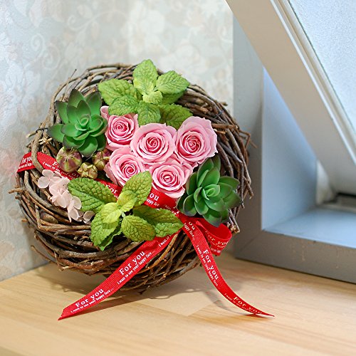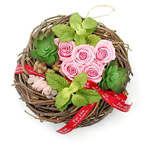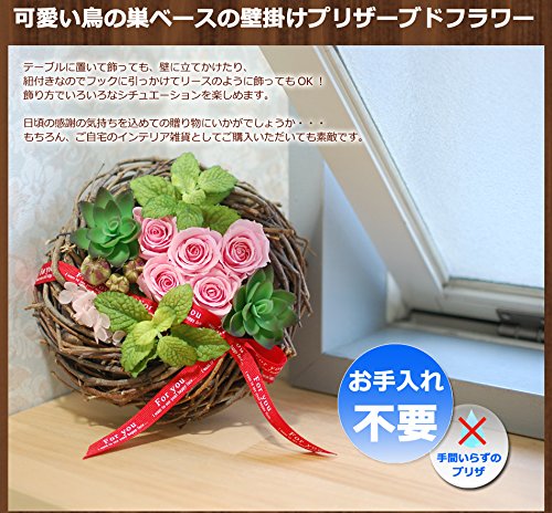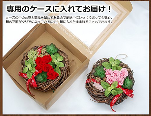 プリザーブドフラワーやドライフラワー・造花でアレンジした壁掛けプリザ。ユニークなベースが特徴のお洒落なデザイン。専用のボックス付きだからホコリの心配がありません!ギフトにもご自宅にもおススメのリース型プリザです!