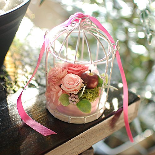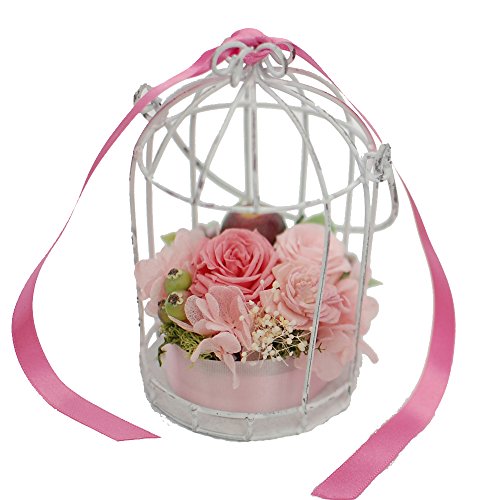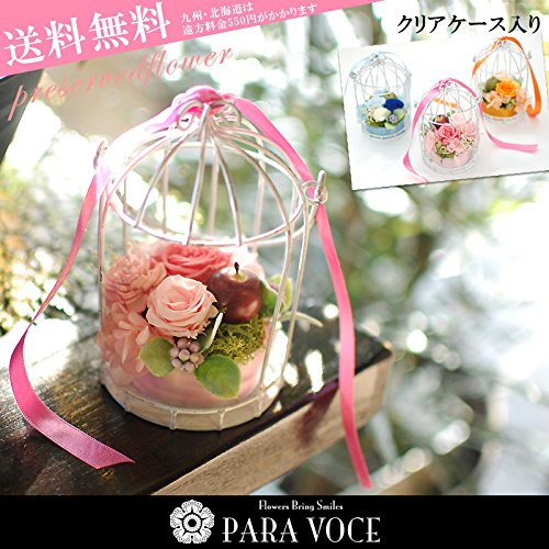 パラボッセ プリザーブドフラワー 鳥かごプリザ ピンク ケース入 横幅7cmx7cmx高さ13cm preserved flowers