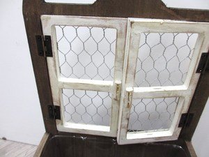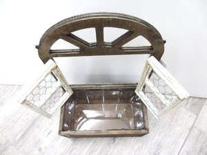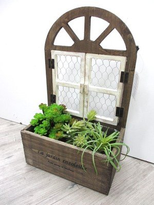 - オシャレなウインドウのついたアンティーク風木製のガーデニングプランターです。