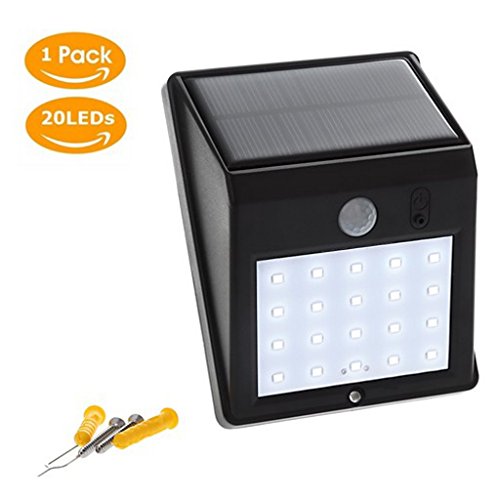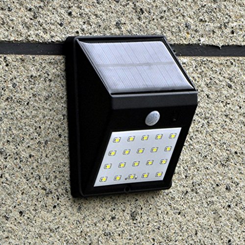 perfk ソーラーパワードライト 20LED 防水 ソーラーモーションセンサー セキュリティライト ウォールライトランプ 屋外 庭フェンス用 全2色 - ブラック
