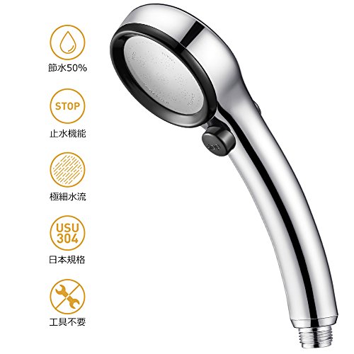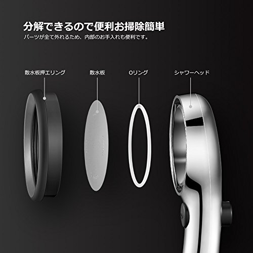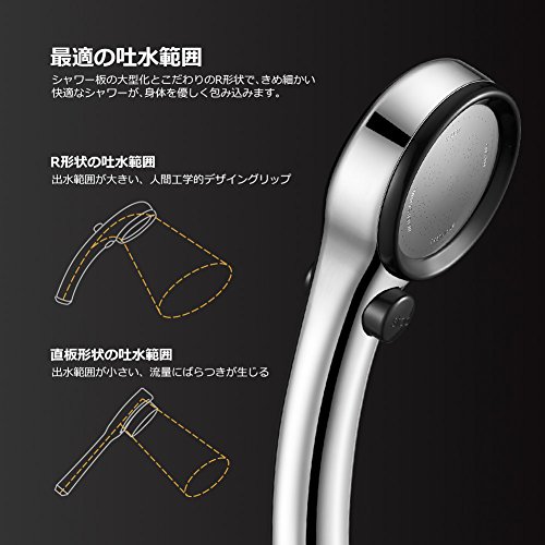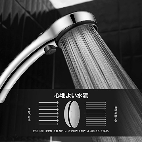 - 【極細水流】ステンレスシャワー板には、0.3mmの極細穴が230個もあり、キメの細かい水流をスムーズに送り出す設計になっています。洗顔や敏感肌に最適のソフト水流をお届けします。