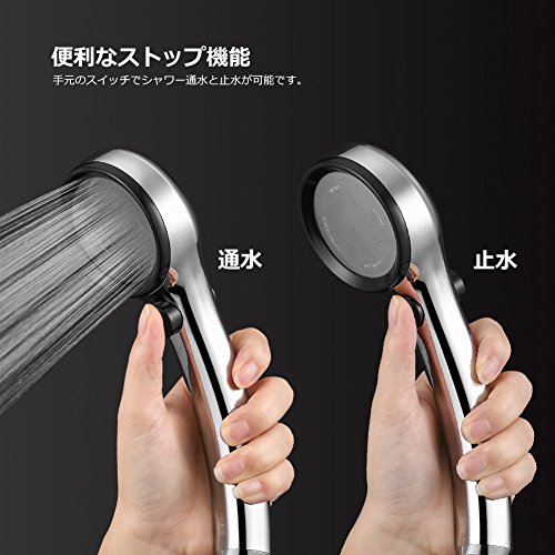 - 【ストップ機能付き】手元のスイッチで、シャワーの「止水」と「通水」が簡単に切り替え可能。シャンプーを使う時に、わざわざ蛇口まで止めに行く必要がありません。