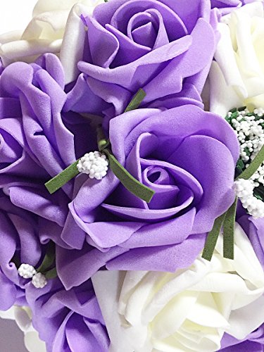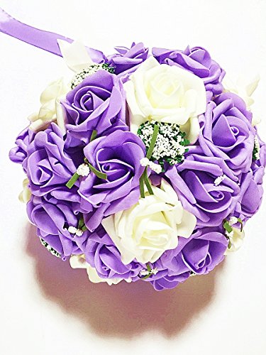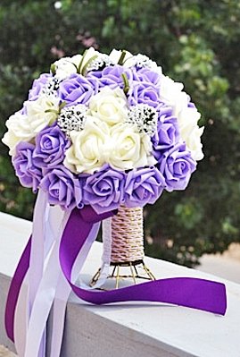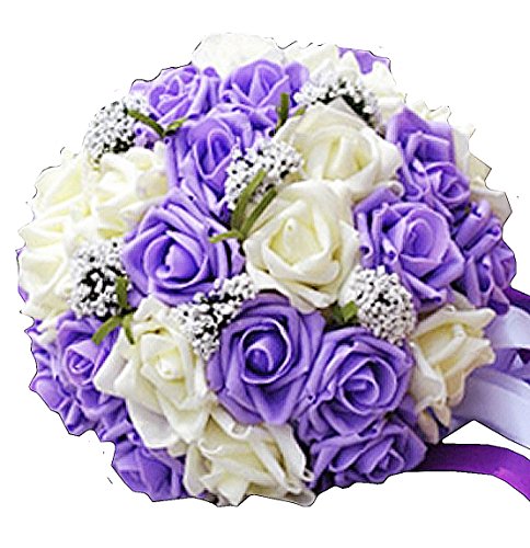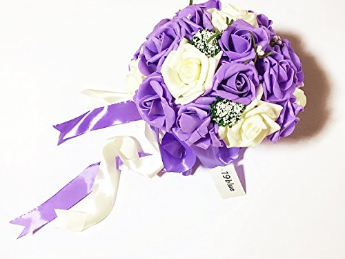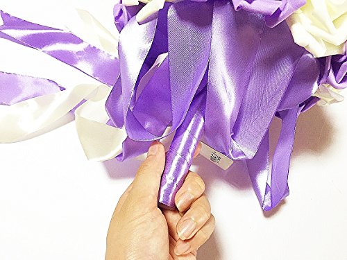 【19blue】 ウェディング ブーケ 花束 バラ 造花 リストレット 2点セット (パープル)