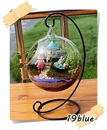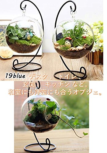 【19blue】 丸型 テラリウム アクアリウム ガラス 花瓶 ハンギング スタンド (10cm)