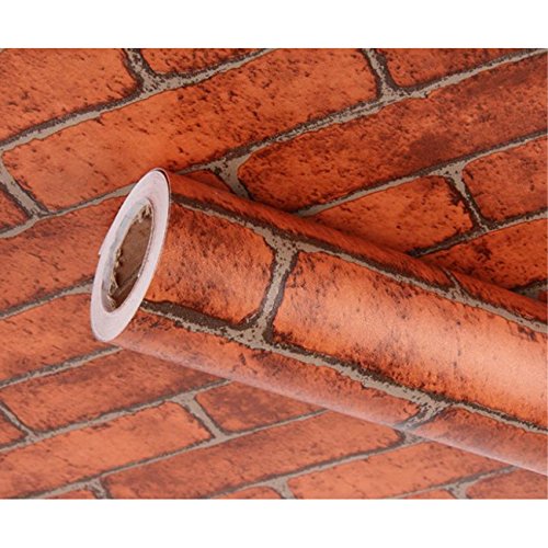 【wakongola】 高級感漂う レンガ かんたん 貼付 シールタイプ DIY 壁紙 シール スキージー セット 45cm × 10m リフォーム ウォールステッカー 防水 木目調 (レンガ(赤))