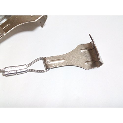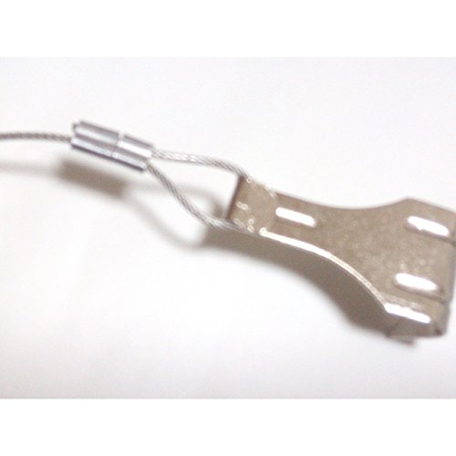 - フック形状の自在金具とワイヤーがセットになった吊下げ金具です。上下の移動はピンを押せば無段階で位置調節が可能、お好みの高さへ無段階調節できます。