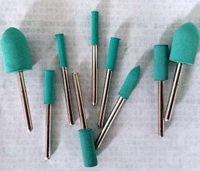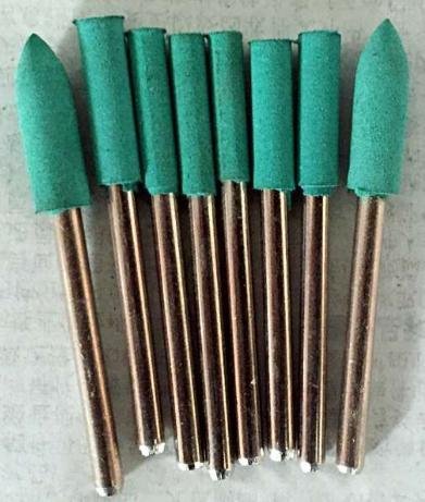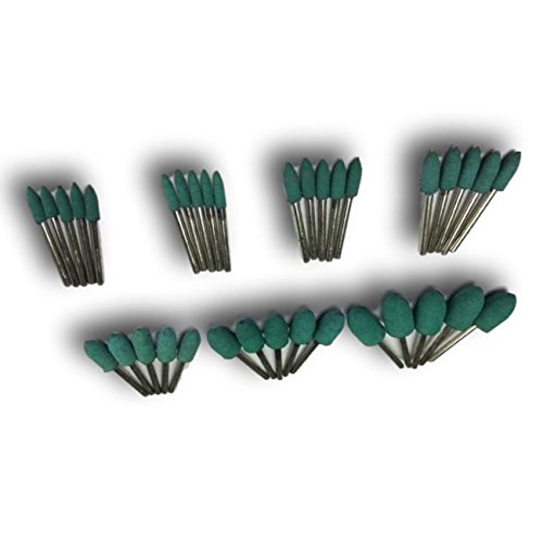 ゴム砥石 砲弾型 軸径3mm 各5本入り (Φ3 4 5 6 8 10 12) 7サイズ 合計35本セット 緑色
