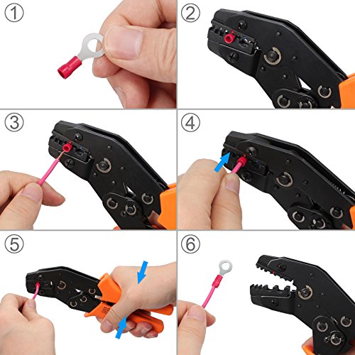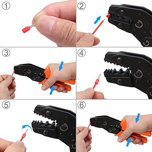 Proster 圧着ベンチ 絶縁閉端子圧着工具 絶縁ペンチ 0.5-2.5mm²調整可能 フェルール端子付き ラチェット機能付き コネクタ用圧着ペンチセット