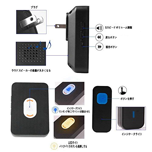 - 【LED点滅ライト&ナイトライト】 - ドアベルが鳴ったときにレシーバーインジケーターが点滅したり、掃除をしたり、他の音の大きな活動をしたりするとき、それは聞こえるだけで鳴きます。さらに、高齢者や聴覚障害者の障害なく、夜間にあなたの部屋を照らすことができます。