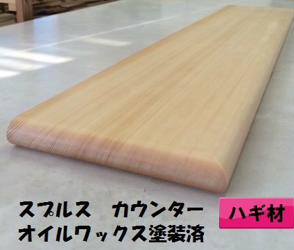 スプルス巾ハギ材 棚板 白色用オイルワックス塗装済 3方R丸面取りカウンター板 長さ2m