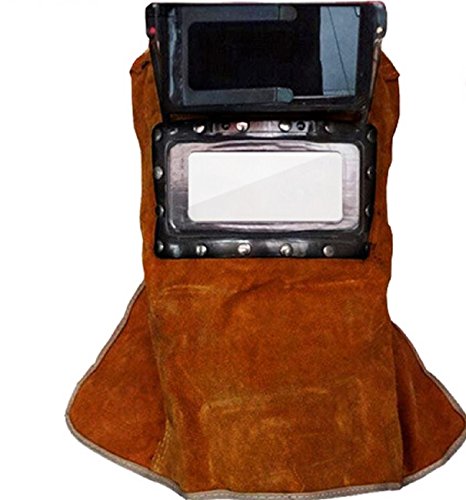溶接面 皮面 革 牛革 用品 用具 保護 現場 作業 開閉 カバー かぶり面 顔 頭 火傷 やけど 防止 (ブラウン)