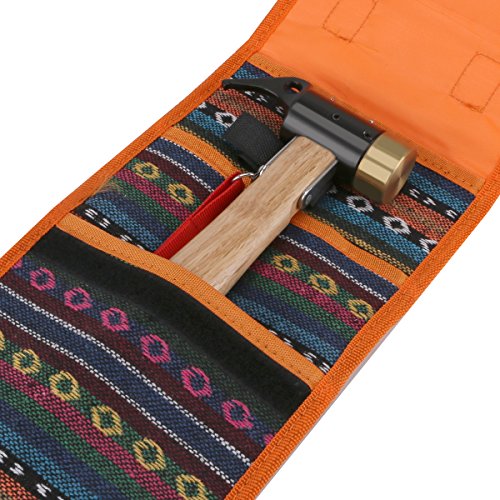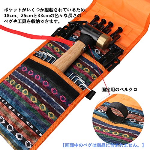- 【収納袋付き】おしゃれなエスニック柄の収納袋は丈夫な1680Dナイロン製。そして、収納袋内部は三つのポケットに分かれており、18cm、25cmと33cmの色々な長さのペグや工具を収納できます。