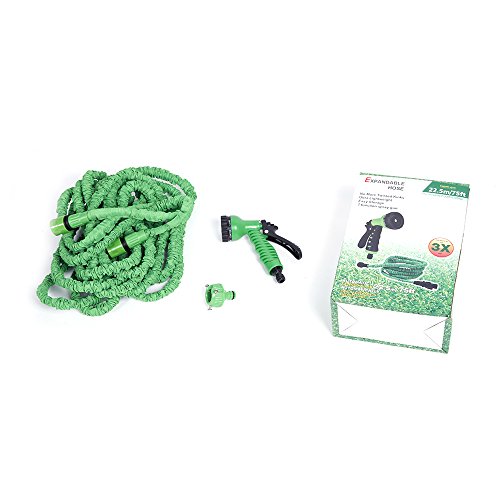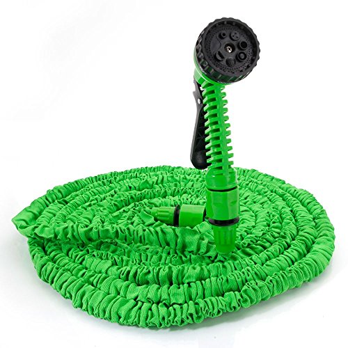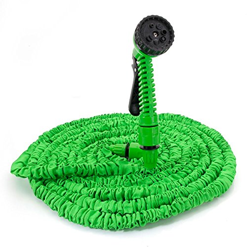 伸びるホース マジックホース 伸縮ホース 改良型 7mが21mに伸びる マジックホース ホースリール 洗車ホース 伸縮 散水ホース ノズル 耐久性 グリーン