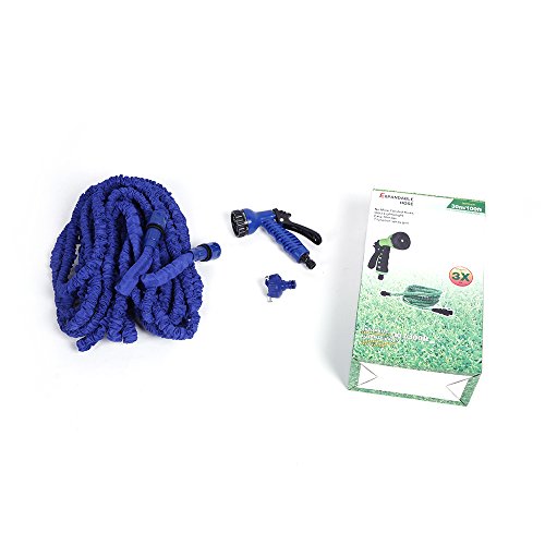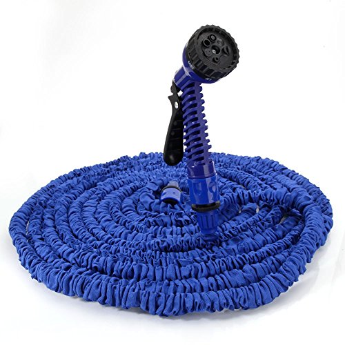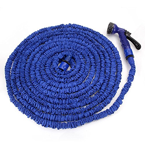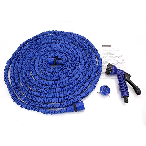 伸びるホース マジックホース 伸縮ホース 改良型 10mが30mに伸びる マジックホース ホースリール 洗車ホース 伸縮 散水ホース ノズル 耐久性 ブルー